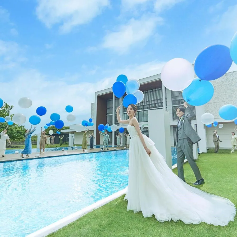 【選べるガーデン&プール付き貸切邸宅(2名~150名可能)】30名以下の会食会場もあり!プールテラス付きナチュラルな会場と、緑のガーデン付き階段入場できる純白・華やかな会場のお好みでお選び頂けます
